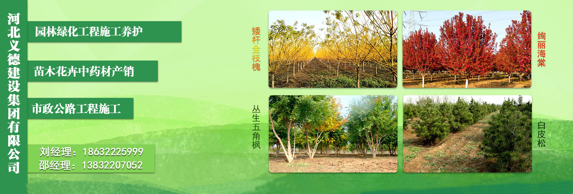 河北義德建設(shè)集團(tuán)有限公司(曾用名:河北義德園林綠化工程有限公司)位于河北省保定市安國(guó)市數(shù)字中藥都續(xù)建區(qū)25號(hào)樓25-1,成立于2008年2月,注冊(cè)資金6000萬(wàn)元,擁有公路工程施工總承包貳級(jí)和市政公用工程施工總承包貳級(jí),主要從事園林綠化工程施工養(yǎng)護(hù)、市政工程施工、公路工程施工、苗木花卉及中藥材種植銷(xiāo)售。