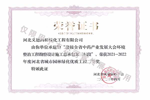 2021-2022年度河北省園林優(yōu)秀企業(yè)